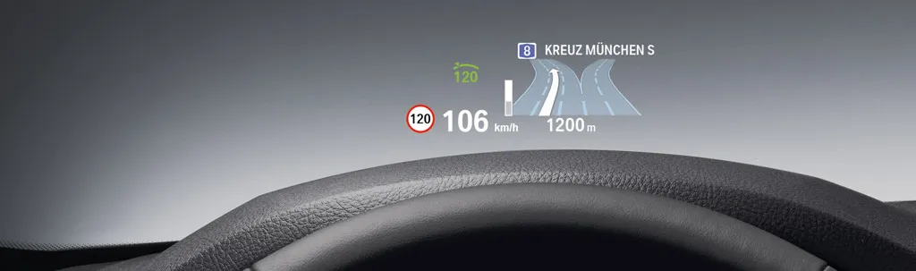- Navigation information displayed in the BMW head-up screen (optional).