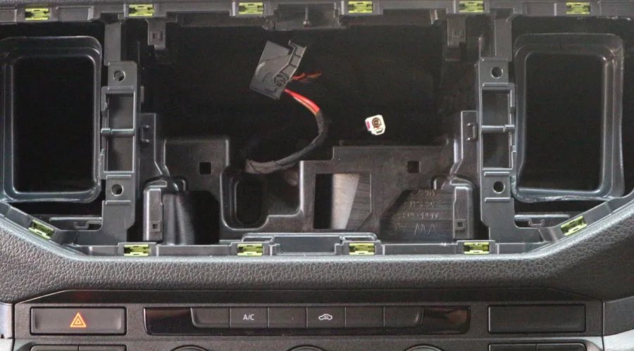 Due to the lower section behind the radio having ducts for the air vents on the Grand California (2019-2023) there is only space for a Single DIN radio chassis or a slim chassis/ modular head unit (maximum mounting depth for the aftermarket radio of 55mm). These units must have the single DIN body relocated to the top of the dashboard because in the crafter the single DIN hole is at the top, the lower part is only 55mm deep and is not a DIN depth so would not allow you to mount a traditional Double DIN radio.