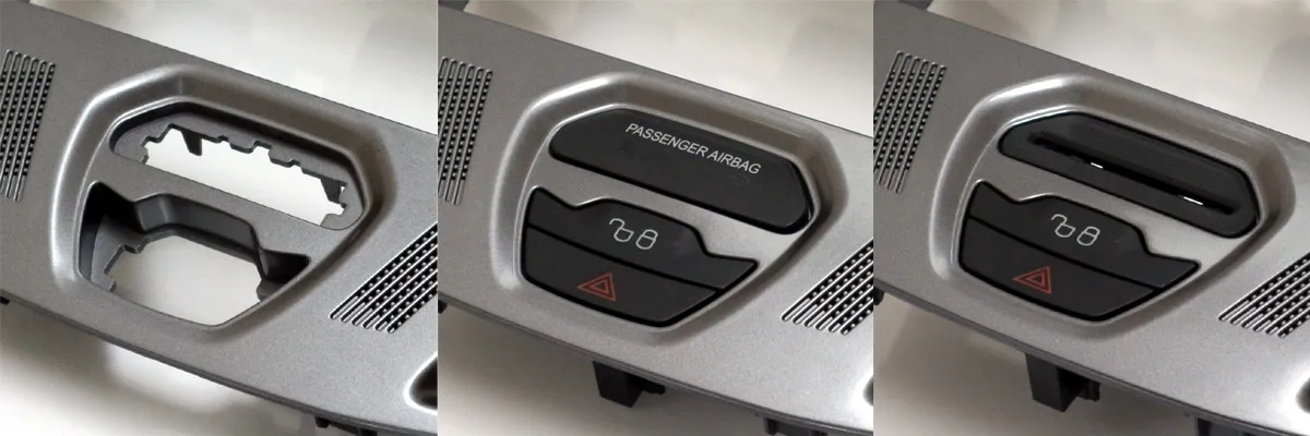 If the vehicle does not have a passenger airbag status light, a blanking plate (pictured below) is included in the kit.