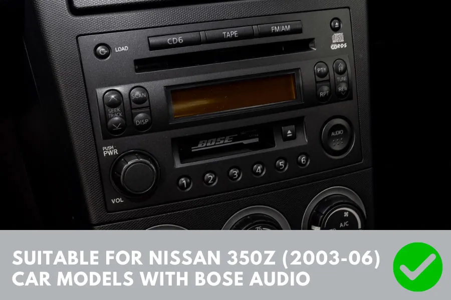 - This stereo upgrade fitting kit is compatible with select Nissan 350Z (03-05) car models with factory fitted BOSE audio systems.