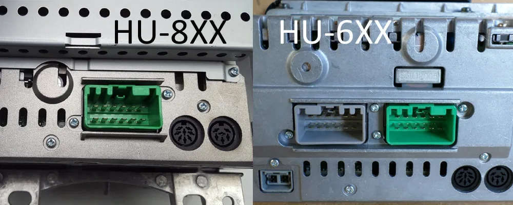 The model numbers of the radios are printed on the front of the radio in the bottom right corner. Model number begin with HU- then have a three digit number to identify the radio model. Numbers begin with either a 6 or an 8 and require different speaker wiring depending on which it is.