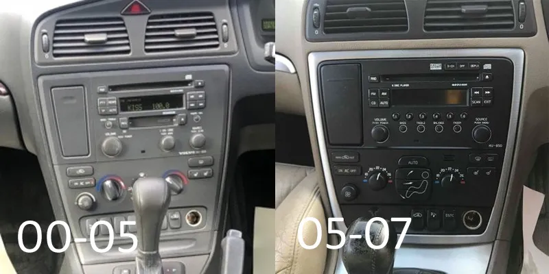 The image below shows examples of pre and post facelift dashboards from a Volvo V70. Note the shape and styling differences of the trim around the radios.