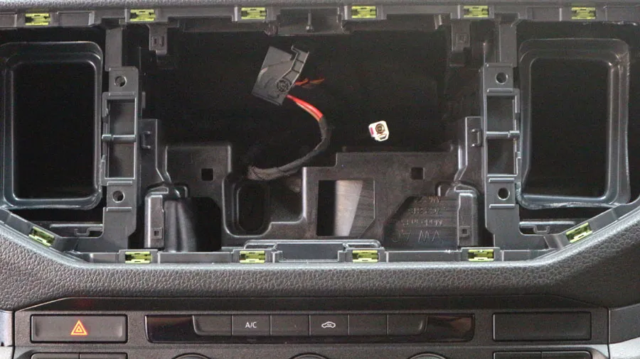 Due to the lower section behind the radio having ducts for the air vents on the Volkswagen Crafter (2017-2023) there is only space for a Single DIN radio chassis or a slim chassis/ modular head unit (maximum mounting depth for the aftermarket radio of 55mm). These units must have the single DIN body relocated to the top of the dashboard because in the crafter the single DIN hole is at the top, the lower part is only 55mm deep and is not a DIN depth so would not allow you to mount a traditional Double DIN radio.